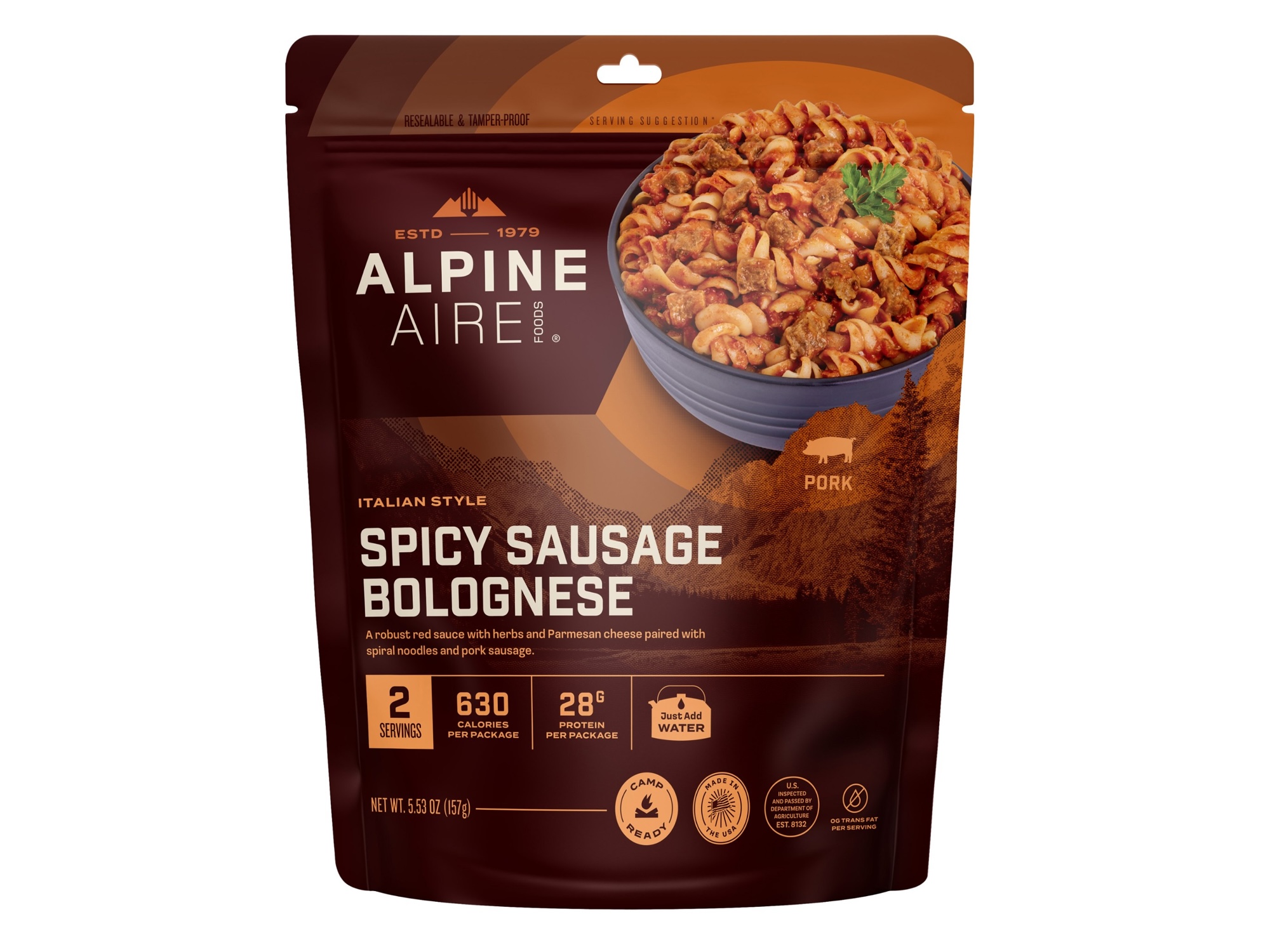 | AlpineAire Spicy Sausage Bolognese | $12 | 2 | 630 | 1.75 cups | 10-12 min. |