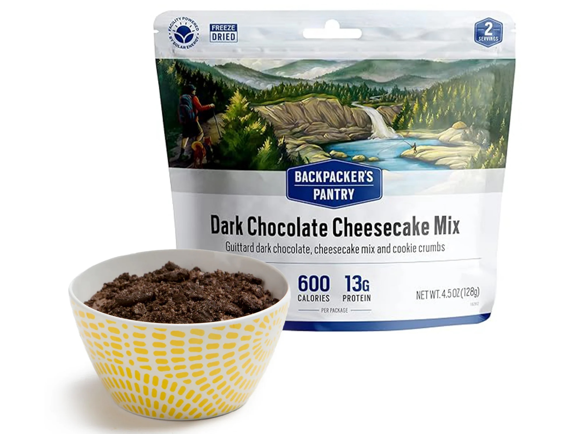 | Backpacker’s Pantry Dark Chocolate Cheesecake Mix | $8 | 2 | 600 | 2/3 cup | 10 min. |