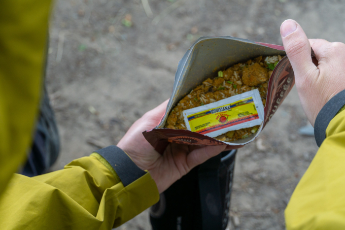 For meals that require water in their “cooking” process, plan ahead to ensure you’ll have access to enough water to hydrate your pouches at mealtime. Will you be carrying some or all of your water on this trip? Is there access to water along the way?