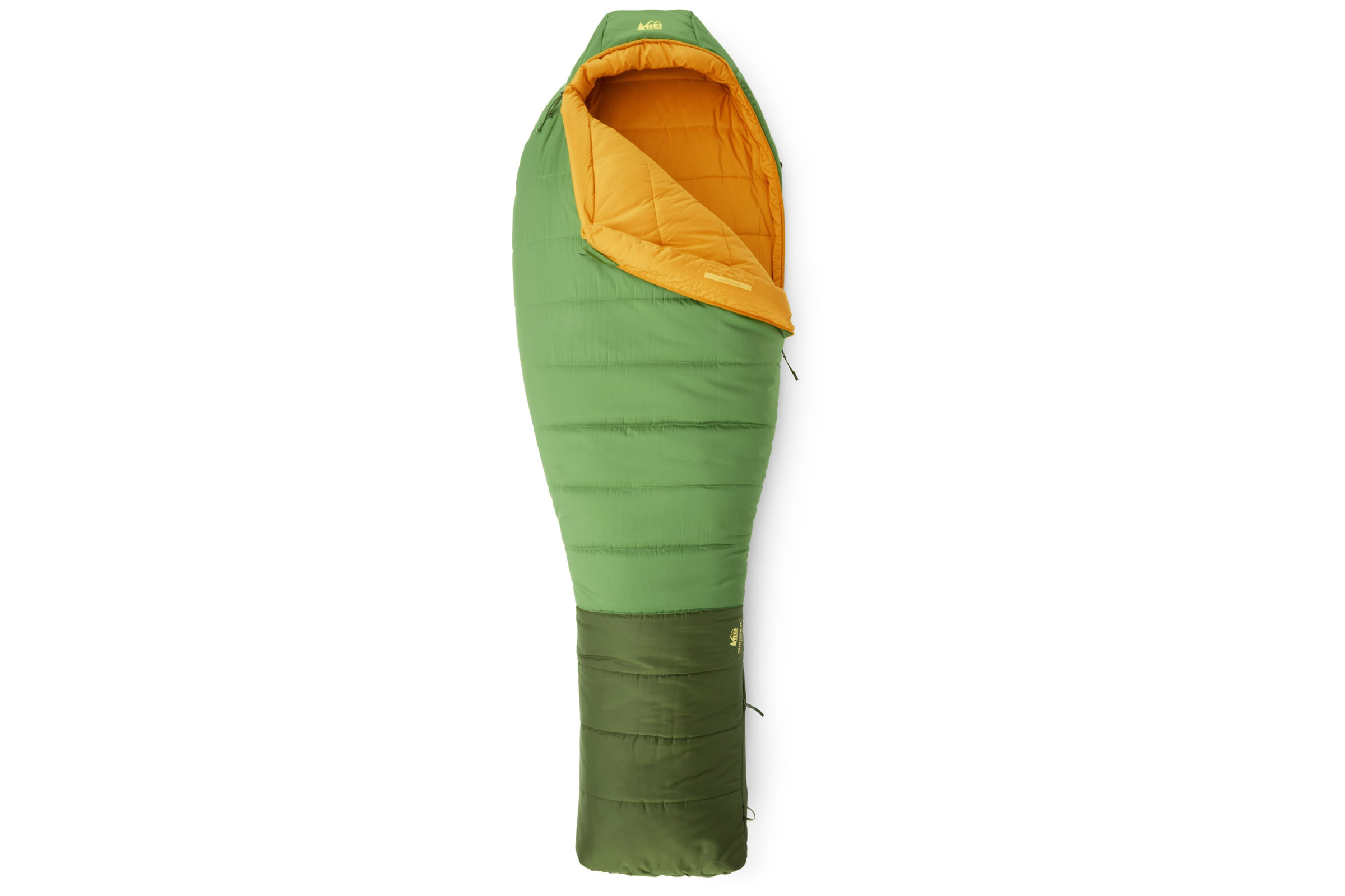 Synthetic insulations are less commonly used in backpacking bags, but offer a man-made alternative to down that can be both cheaper and more resistant to moisture. These polyester fibers trap and hold warmth like down, but won’t compress nearly as well, making it a better fill for front-country sleeping bags. Still, many budget bags use a synthetic fill, such as the REI Co-op Trailmade 20, and come in significantly cheaper than even the cheapest down bags, like the $170 Kelty Cosmic Down.