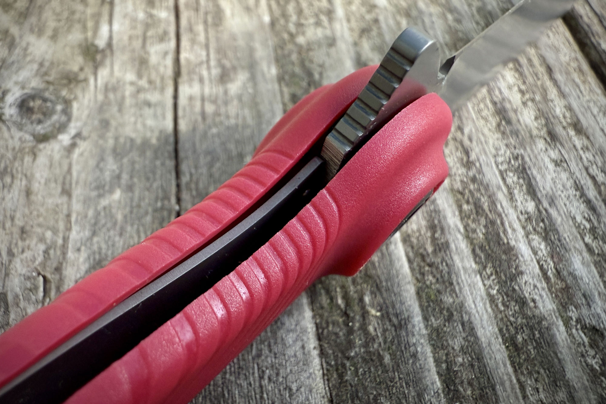 Similar to the Grivory that Benchmade uses on knife models like its Griptilian and Bugout, the glass-reinforced nylon scales on the Whidbey provide excellent grip and durability. Where materials like G10 and Micarta would have provided more structure, the steel liners fill in that space while keeping the knife’s overall weight below 3 ounces.